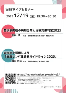2025年10月28日(火) 9月19日(金)WEBライブセミナー「皮膚T細胞リンパ腫の分類とその考え方」「皮疹型からみたATLの診断と治療」「CTCL/ATL造血幹細胞移植」をビデオライブラリに追加しました。